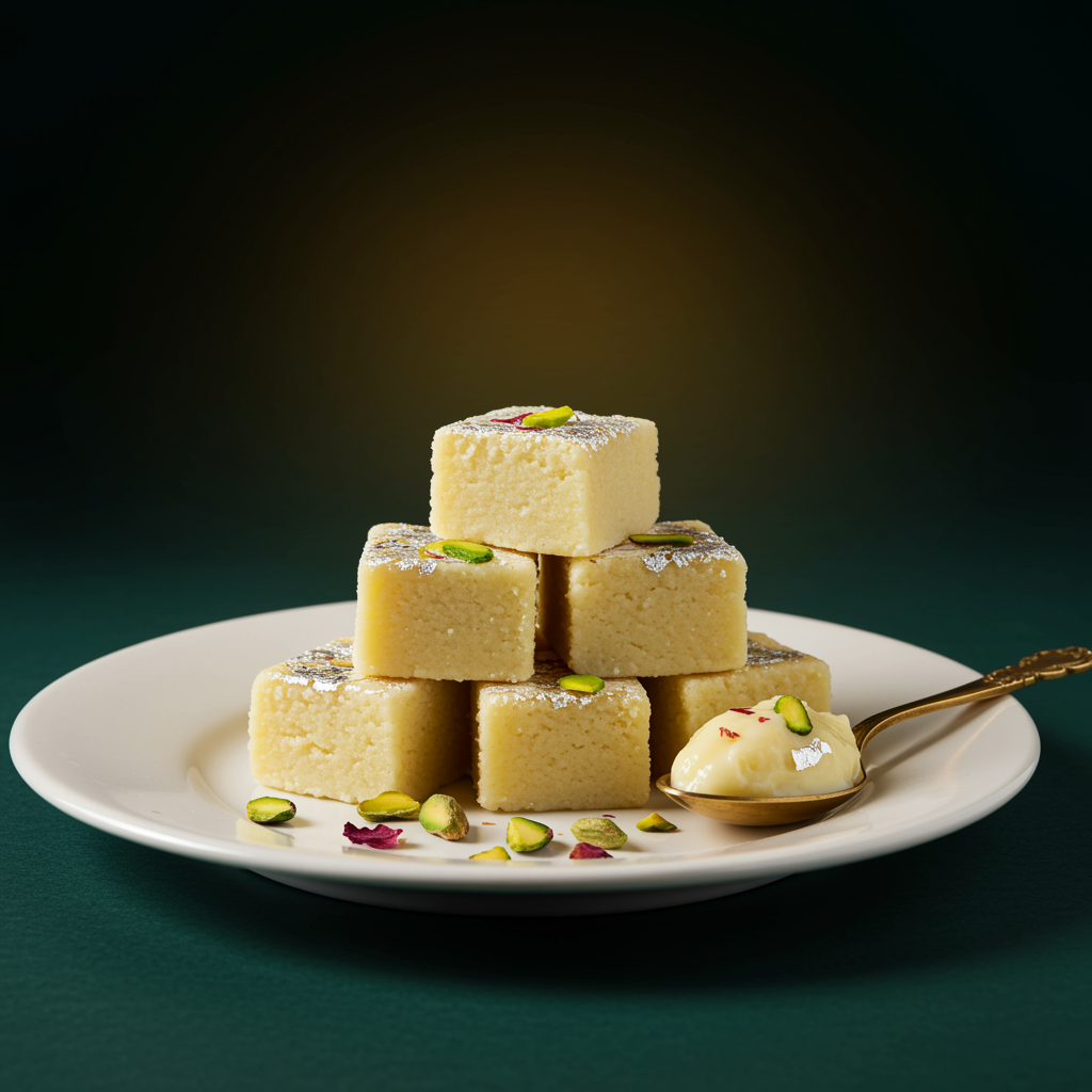 A traditional milk-based sweet with a moist, grainy texture and rich taste.